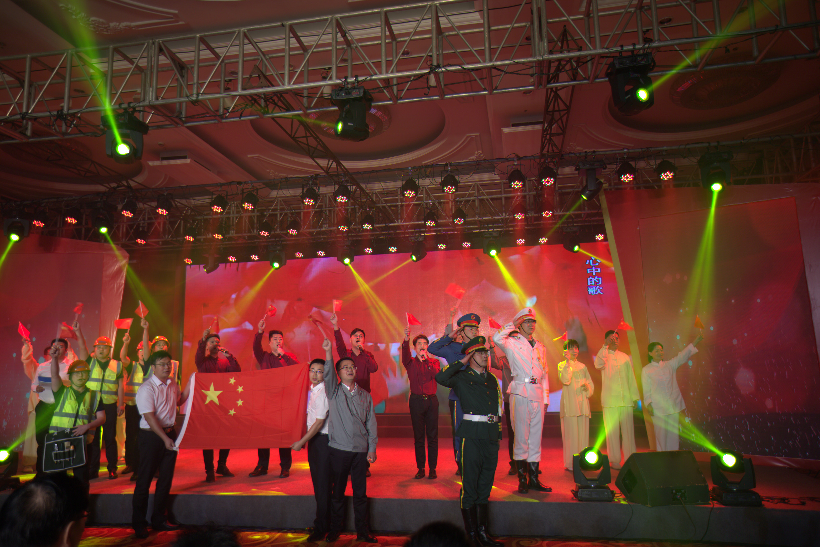 集團(tuán)系統(tǒng)15家基層黨組織編排節(jié)目參加了演出,江天化學(xué)黨支部表演的《盛世花開》拉開了演出的帷幕,其他基層黨組織相繼表演了詩(shī)朗誦《高舉旗幟跟黨走》、《有一支歌》,歌舞表演《再唱山歌給黨聽》、《萬(wàn)泉河水》、《紅旗飄飄》,小品《審舅舅》等節(jié)目,集團(tuán)黨建共建單位浙商銀行南通分行黨委助演了民樂(lè)《青花瓷》節(jié)目。