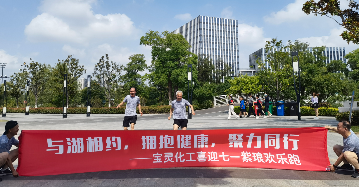 為積極貫徹國家體育總局倡導(dǎo)的行走運動,推廣健身理念,養(yǎng)成積極健康、文明環(huán)保的生活方式,豐富員工的業(yè)余生活,營造企業(yè)積極向上的文化氛圍,江蘇寶靈化工股份有限公司于6月11日舉辦了“與湖相約,擁抱健康,聚力同行”喜迎七一紫瑯歡樂跑活動。此次活動由公司工會主辦,活動主題“低碳  綠色  健康”,活動口號“快樂運動  與你同行”,活動地點南通市中創(chuàng)區(qū)紫瑯湖公園。