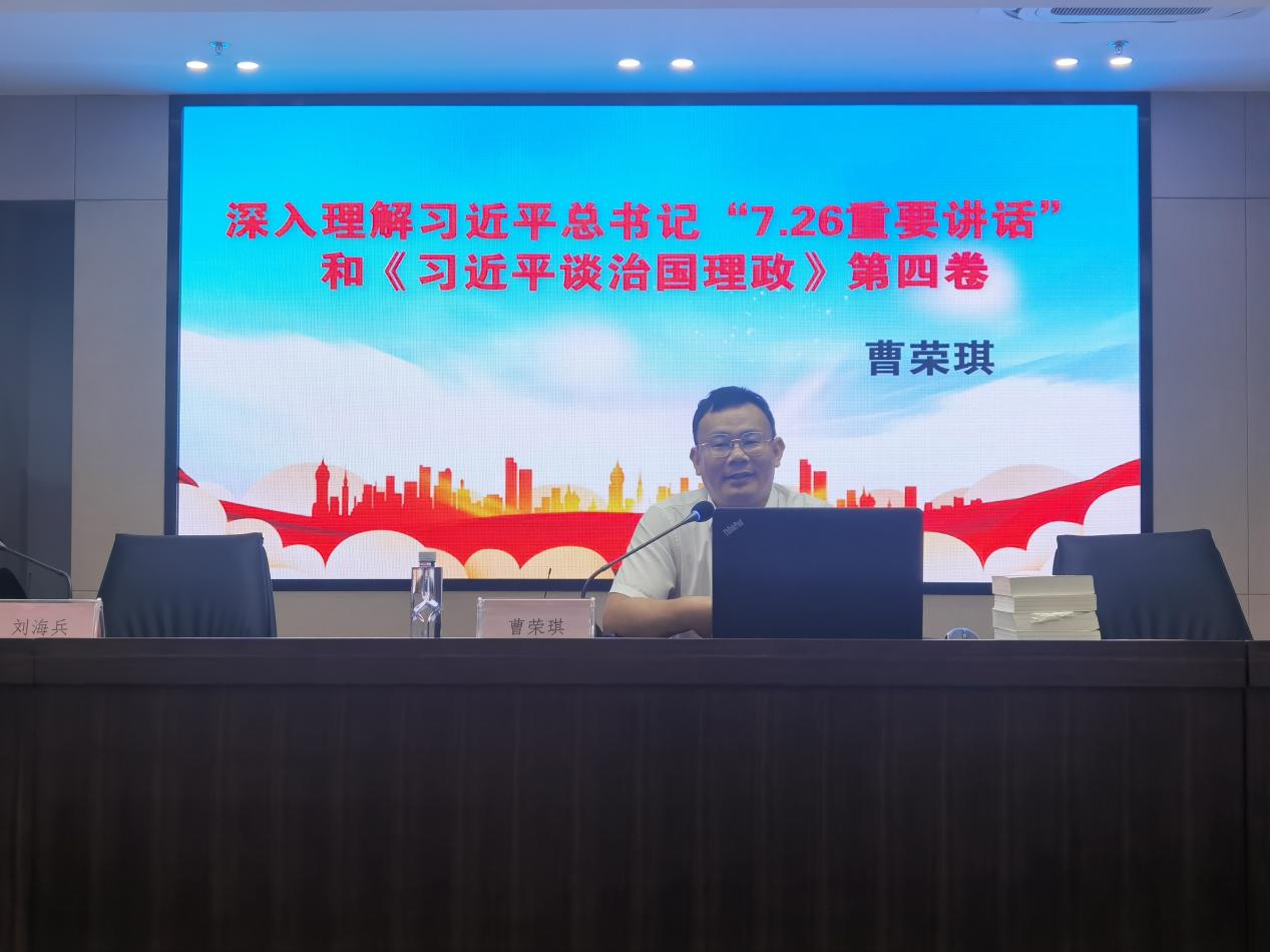 8月30日上午,國融公司召開專題學(xué)習(xí)會(huì)暨主題黨日活動(dòng),學(xué)習(xí)習(xí)近平總書記“7.26重要講話”和《習(xí)近平談治國理政》第四卷,邀請南通市通州區(qū)委宣傳部副部長、新聞出版局局長曹榮琪作專題授課。學(xué)習(xí)活動(dòng)由公司黨委書記、董事長、總經(jīng)理劉海兵主持,全體員工參加了此次學(xué)習(xí)。